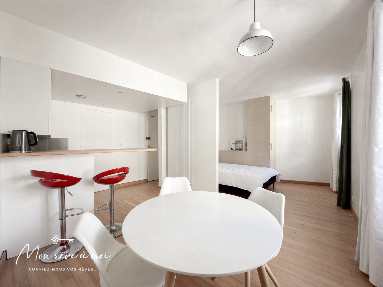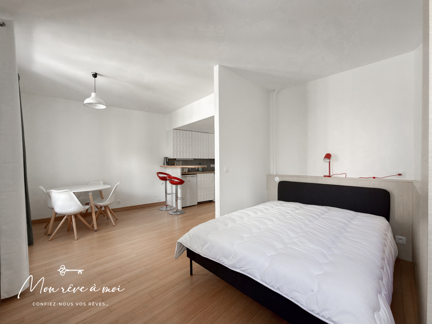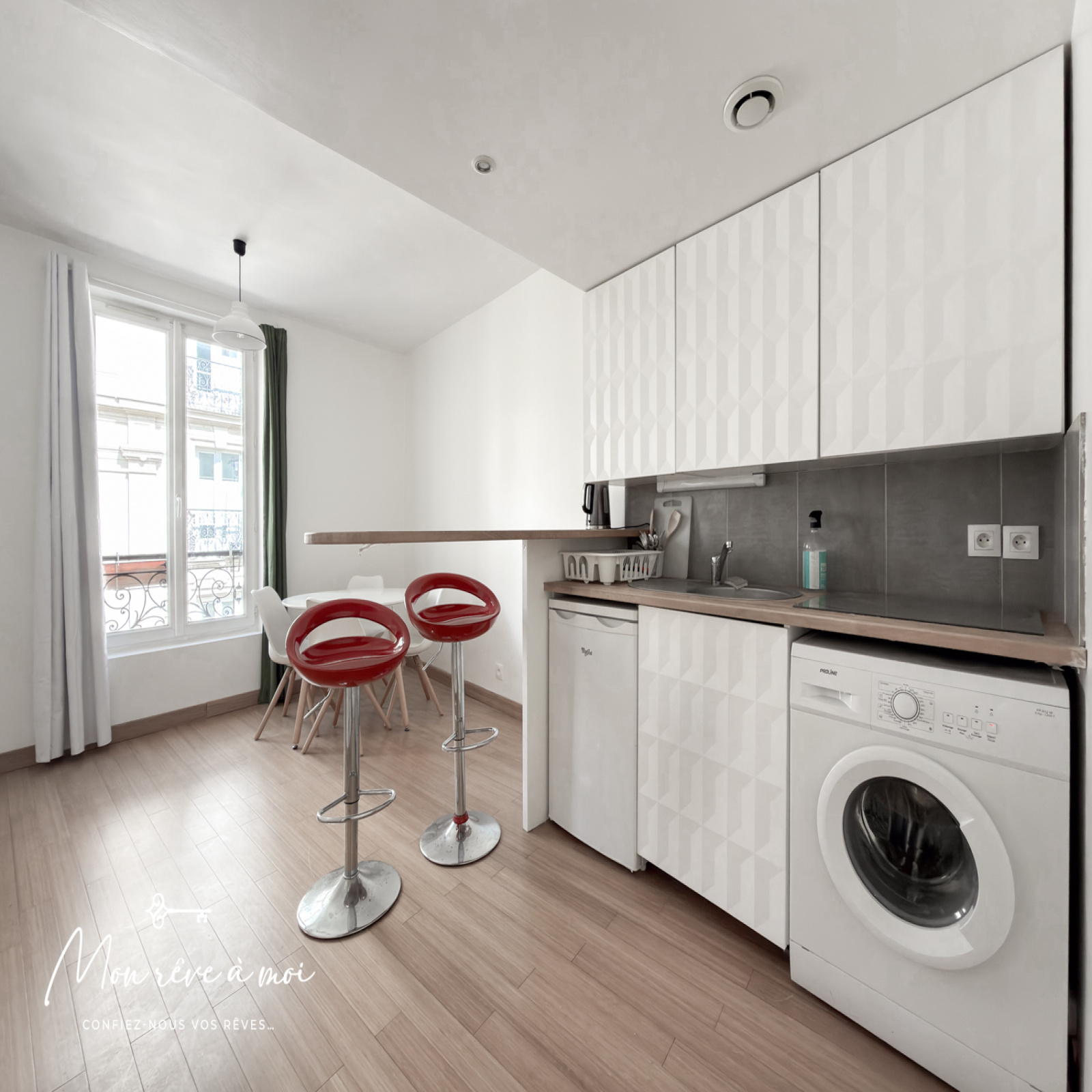 Mon rêve à moi vous propose à la location, ce studio meublé de 28m2 lumineux et en parfait état, situé rue Jacquier, à proximité immédiate du métro, de la Gare Montparnasse et des commerces.