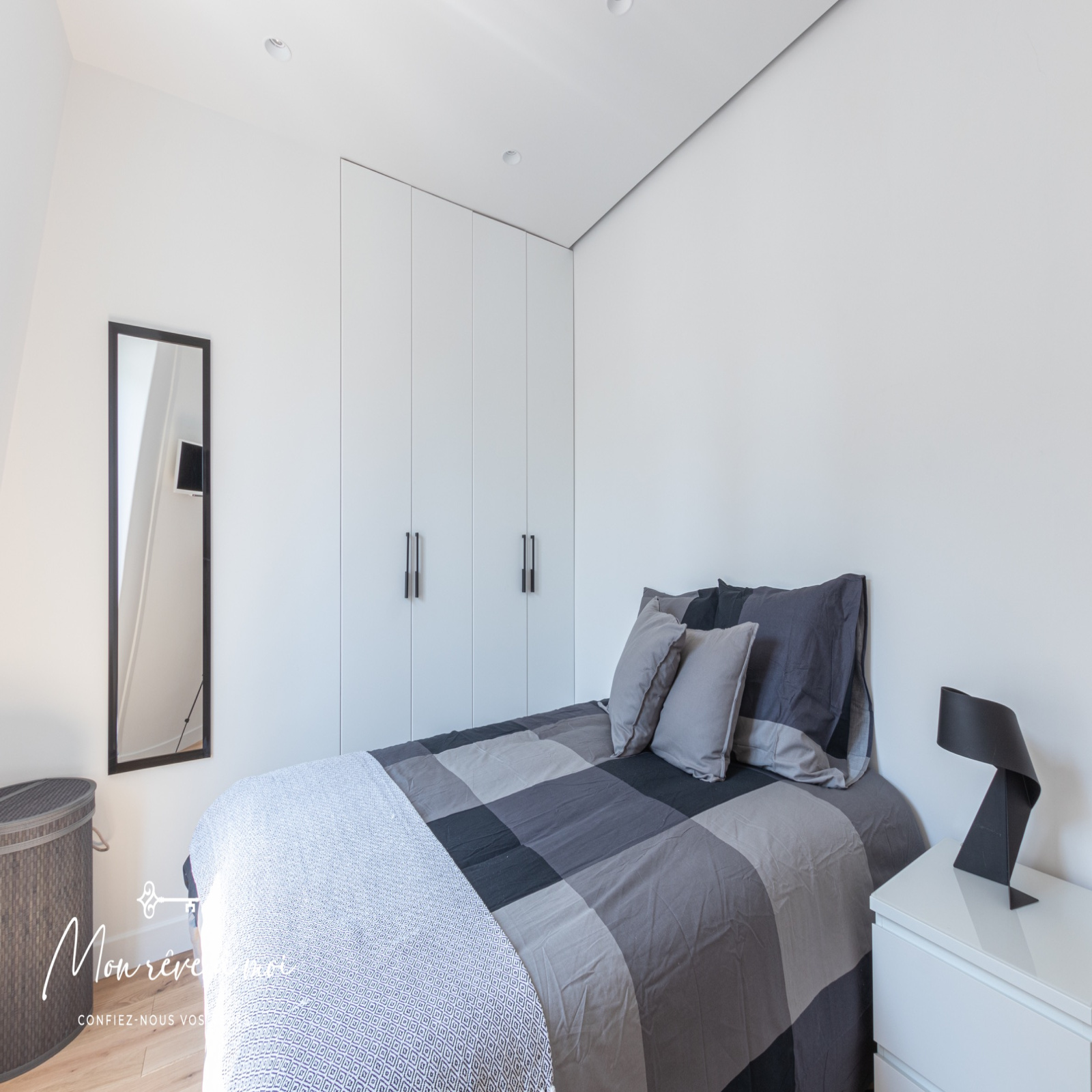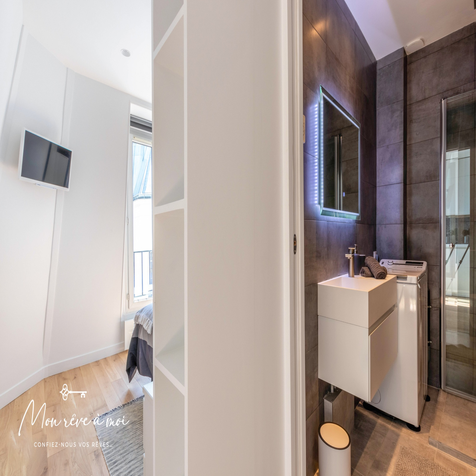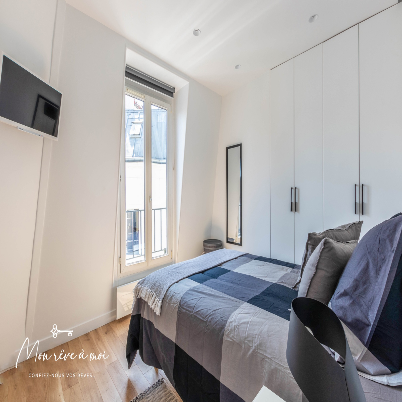 Ce bien lumineux, calme et sans vis-à-vis, se compose d’une pièce principale avec un coin cuisine aménagé, d’une chambre avec rangements et d’une salle d’eau avec WC intégré.