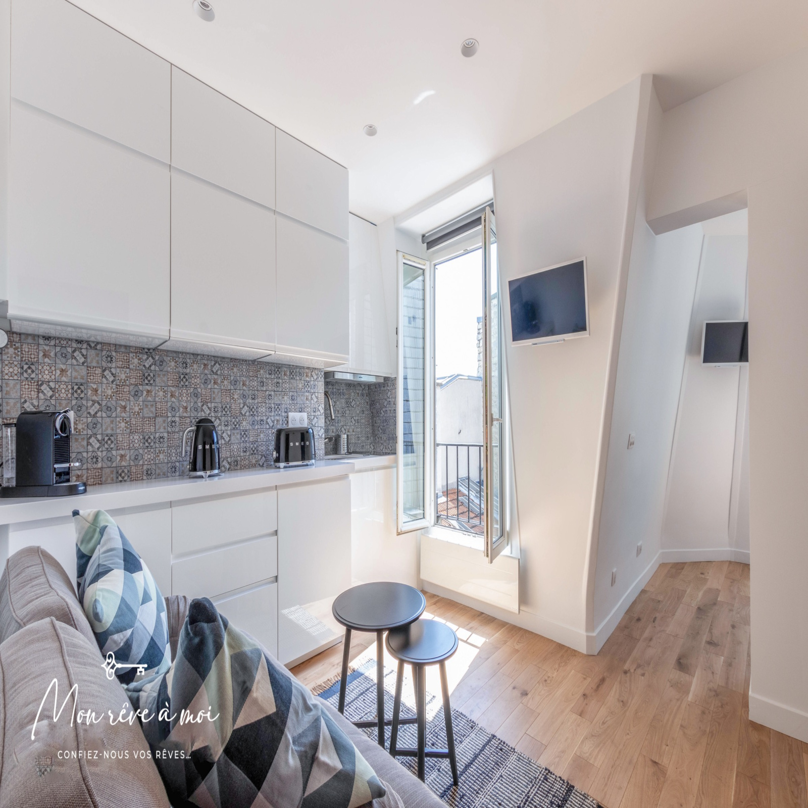 Mon rêve à moi vous propose à la location ce 2 pièces meublé de 23 m² en parfait état, situé au 6ème étage sans ascenseur d’un immeuble de 1900 rue Louise Michel, à proximité immédiate des commerces et des stations de Métro Louise Michel et Anatole France.
