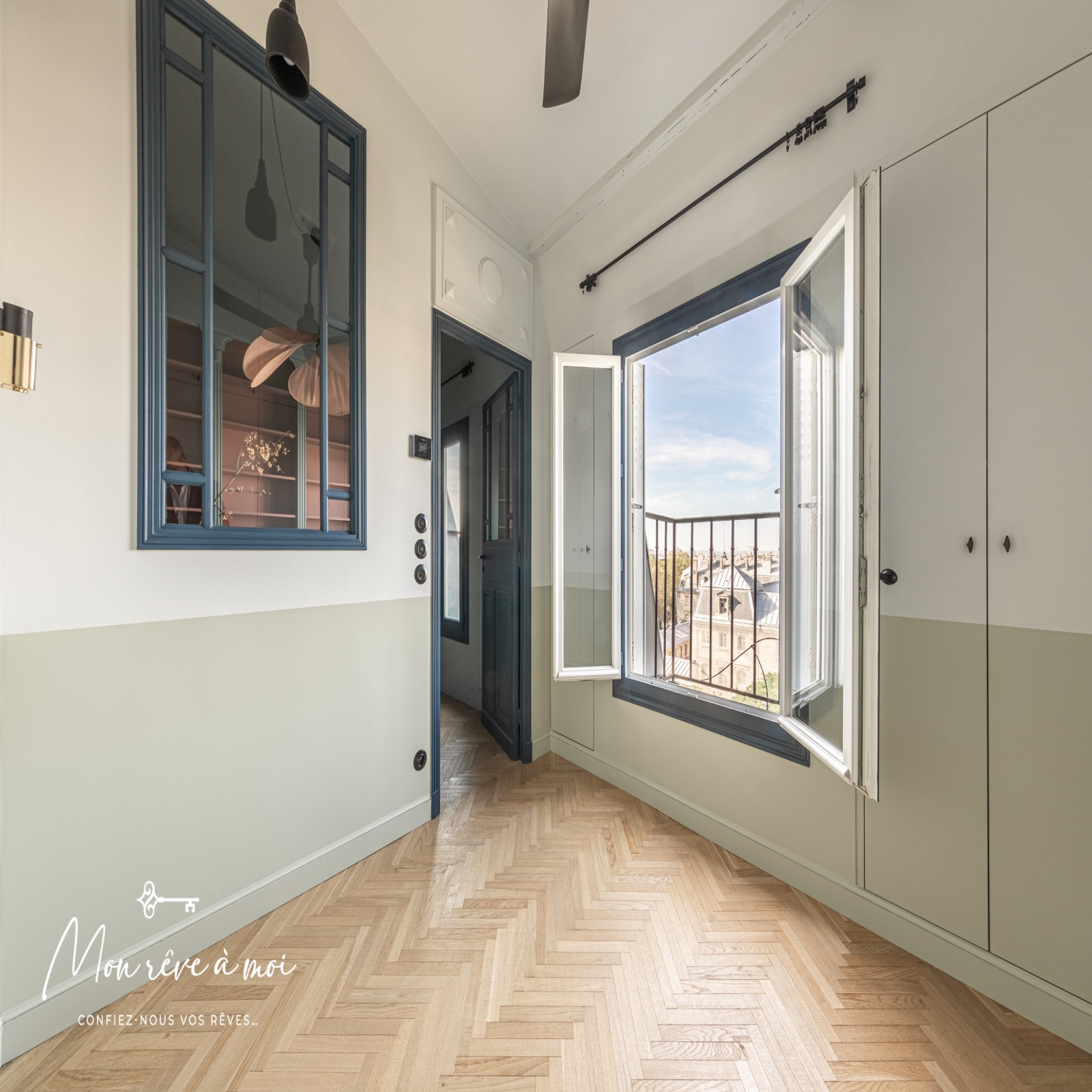 Ce bien à bénéficié d’une rénovation complète et haut de gamme, il dispose notamment de fenêtres en double vitrage, de parquet massif en Point de Hongrie ainsi que de très nombreux rangements.