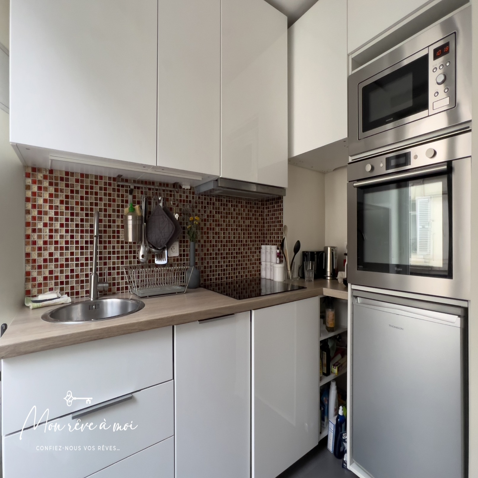 Ce bien en parfait état, au 3ème étage sans ascenseur d'un immeuble de 1900 (dont les travaux de ravalement ont été votés et payés), se compose d’un séjour avec cuisine ouverte, aménagée et équipée de 16m², dune chambre de 10m² ainsi que d’une salle d’eau avec WC.