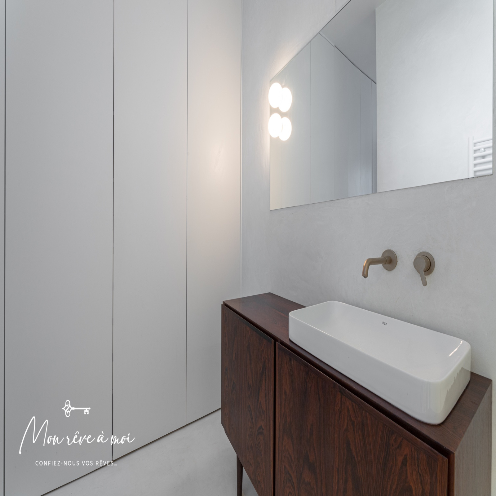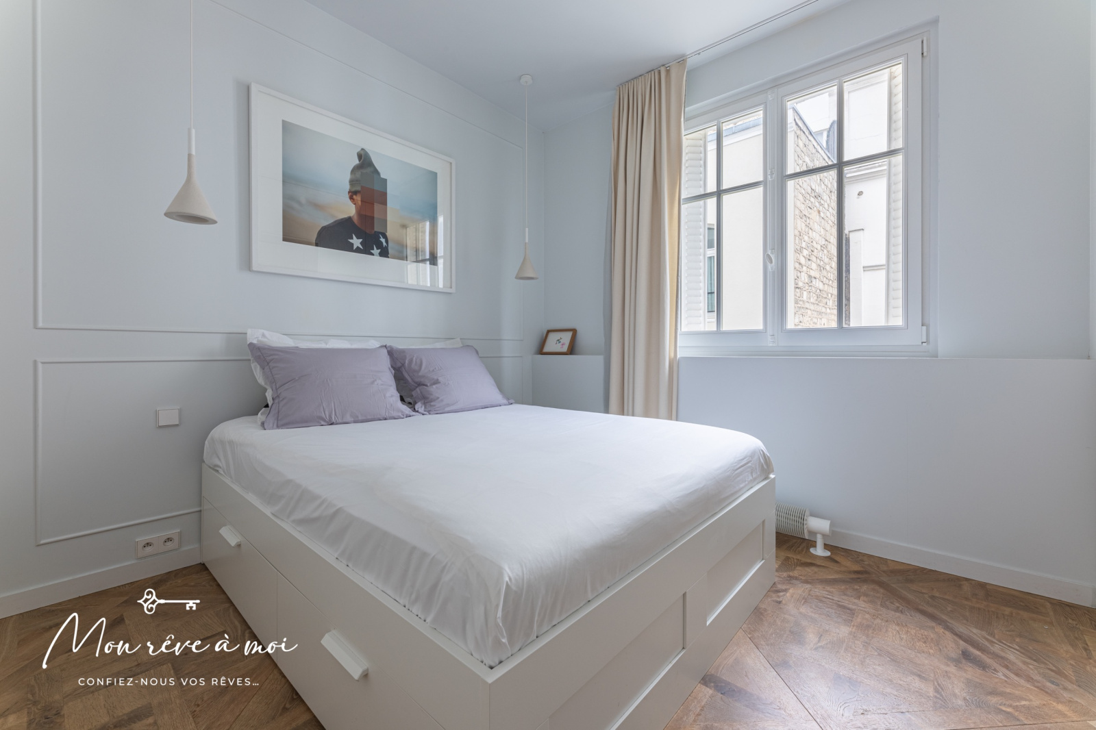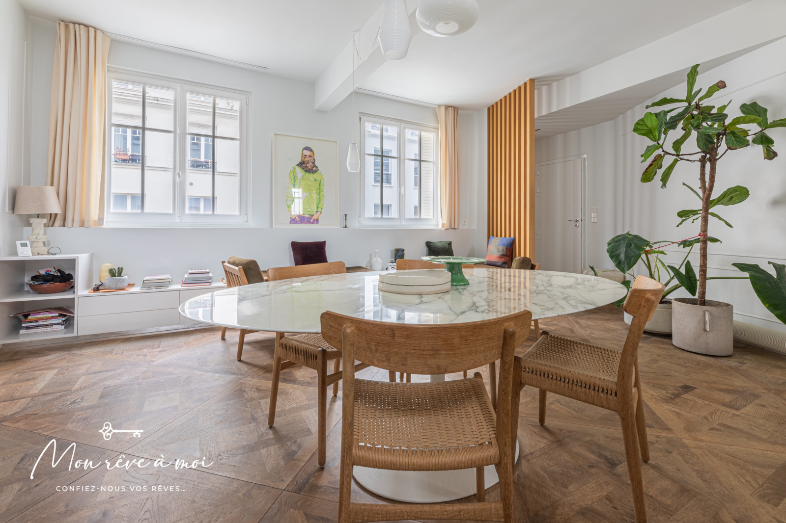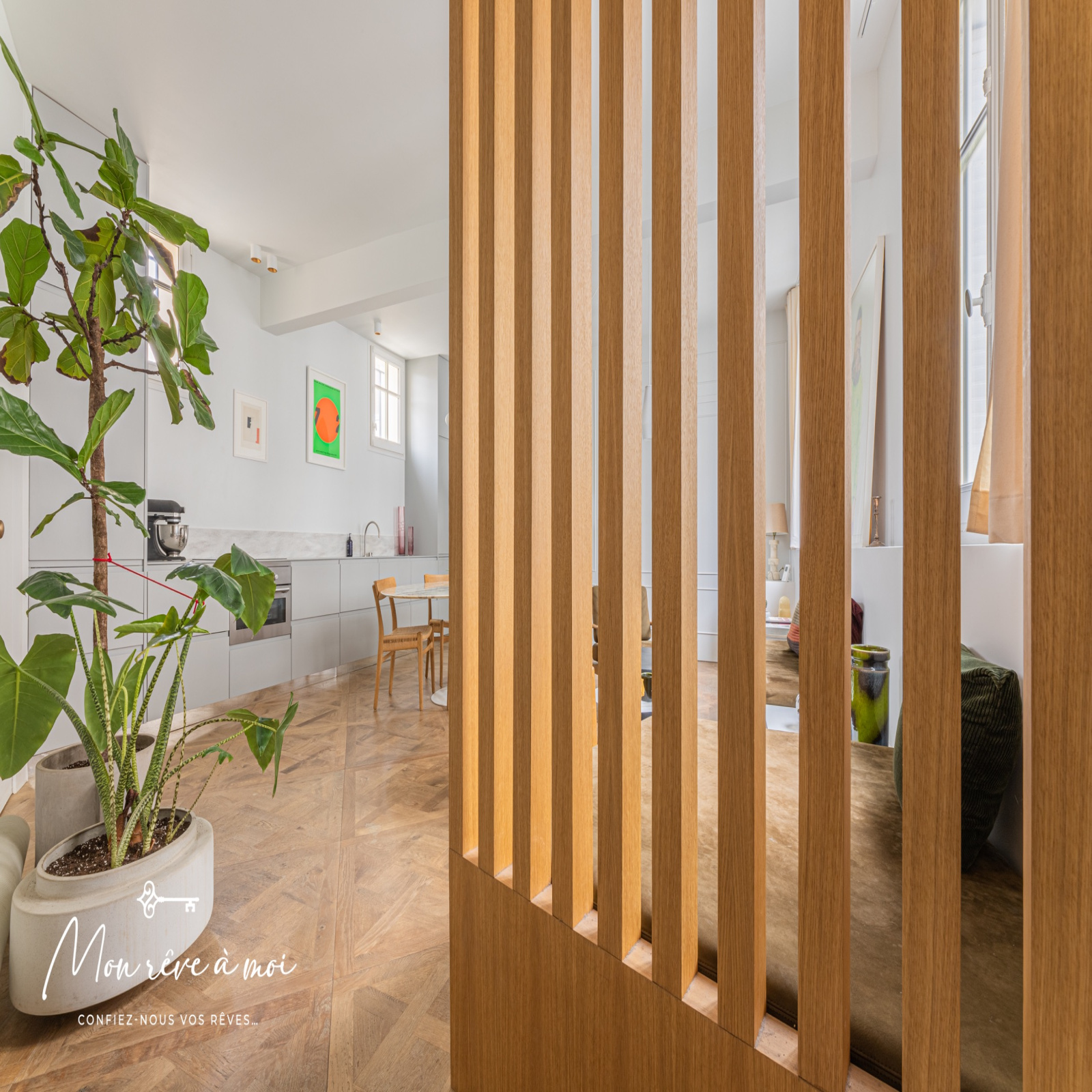 Mon rêve à moi, 10 ans d'expérience et une commission fixe de 6 500 € vous propose à la vente et en exclusivité, cet appartement 2 pièces de 54m² (52,59 Loi Carrez) intégralement rénové par architecte, au sein d’un immeuble bien entretenu de 1800, à proximité immédiate des commerces et des transports.