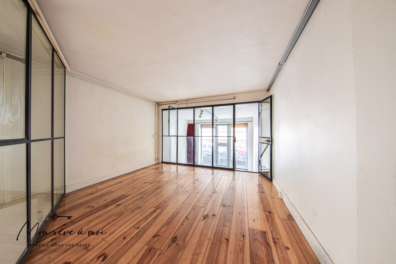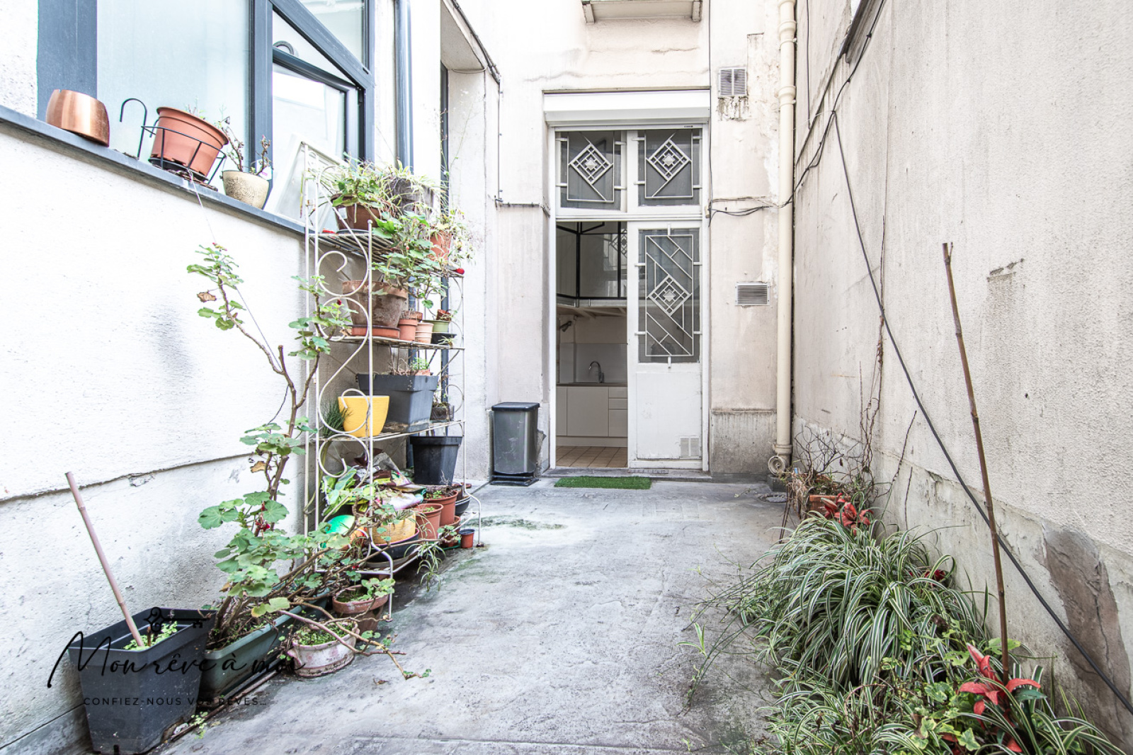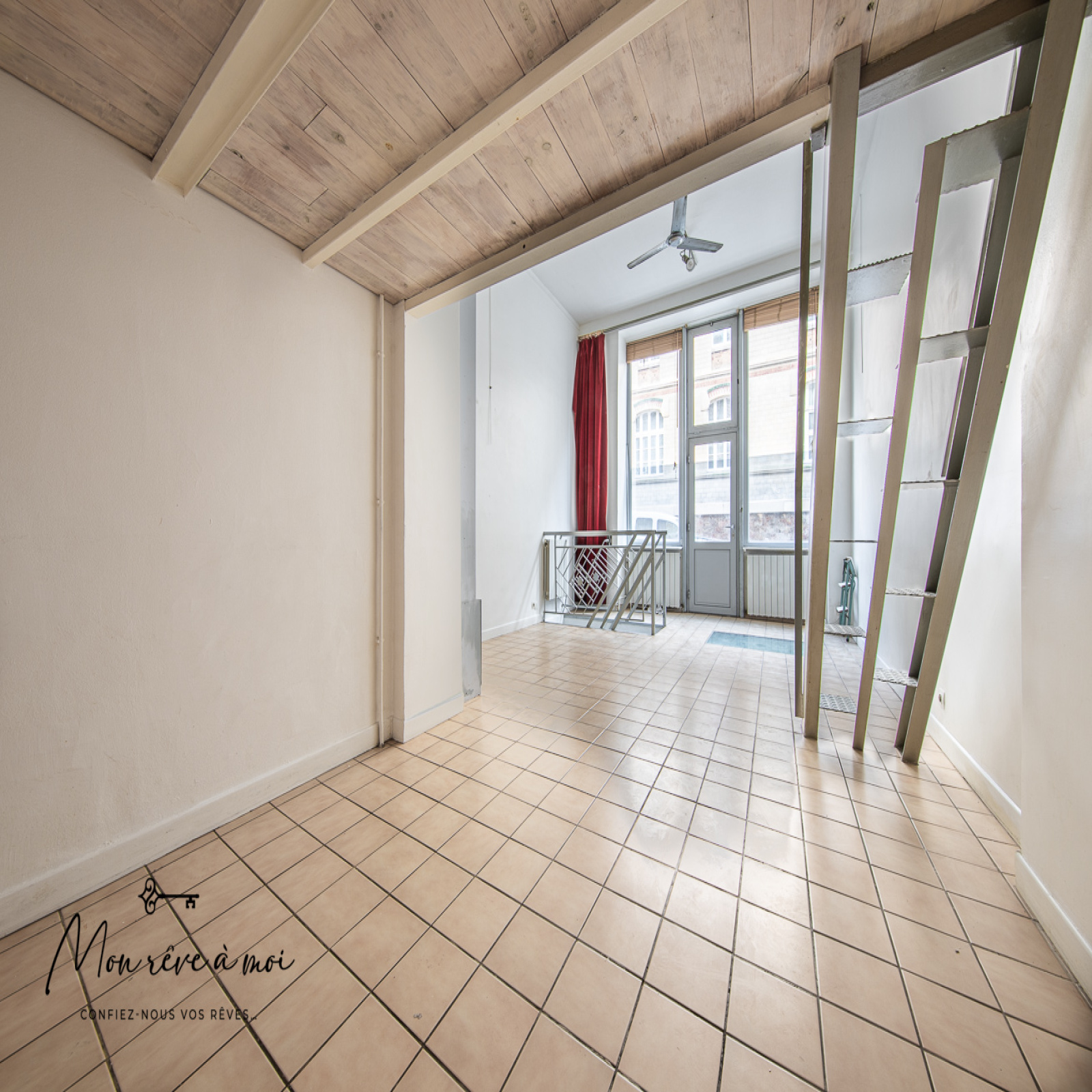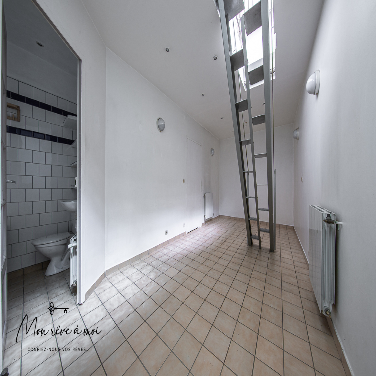 d’un ensemble séjour, salle à manger et cuisine aménagée de 36m², donnant accès à une cour, d'une mezzanie composée d'une chambre de 11m² ainsi que de sa salle de douche avec un WC.