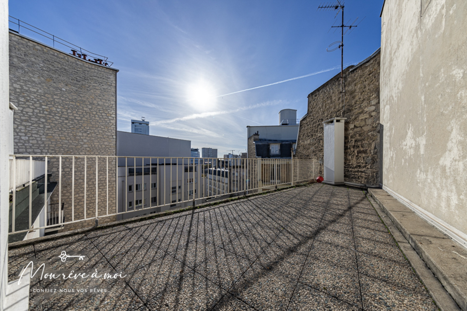 L’appartement a un accès privatif au toit terrasse de 90m² (constructible).
