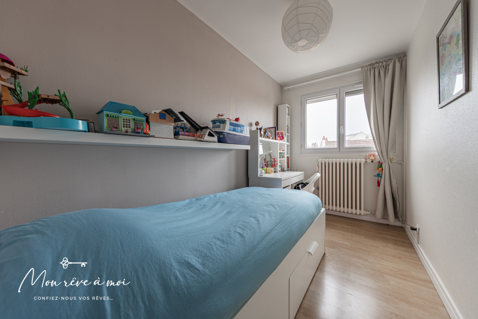 Au 1er étage, de deux chambres de 11m² et 14m² avec rangements, d'un bureau (chambre d'enfant) de 6,59m² ainsi que d'une salle d’eau incluant un second WC.