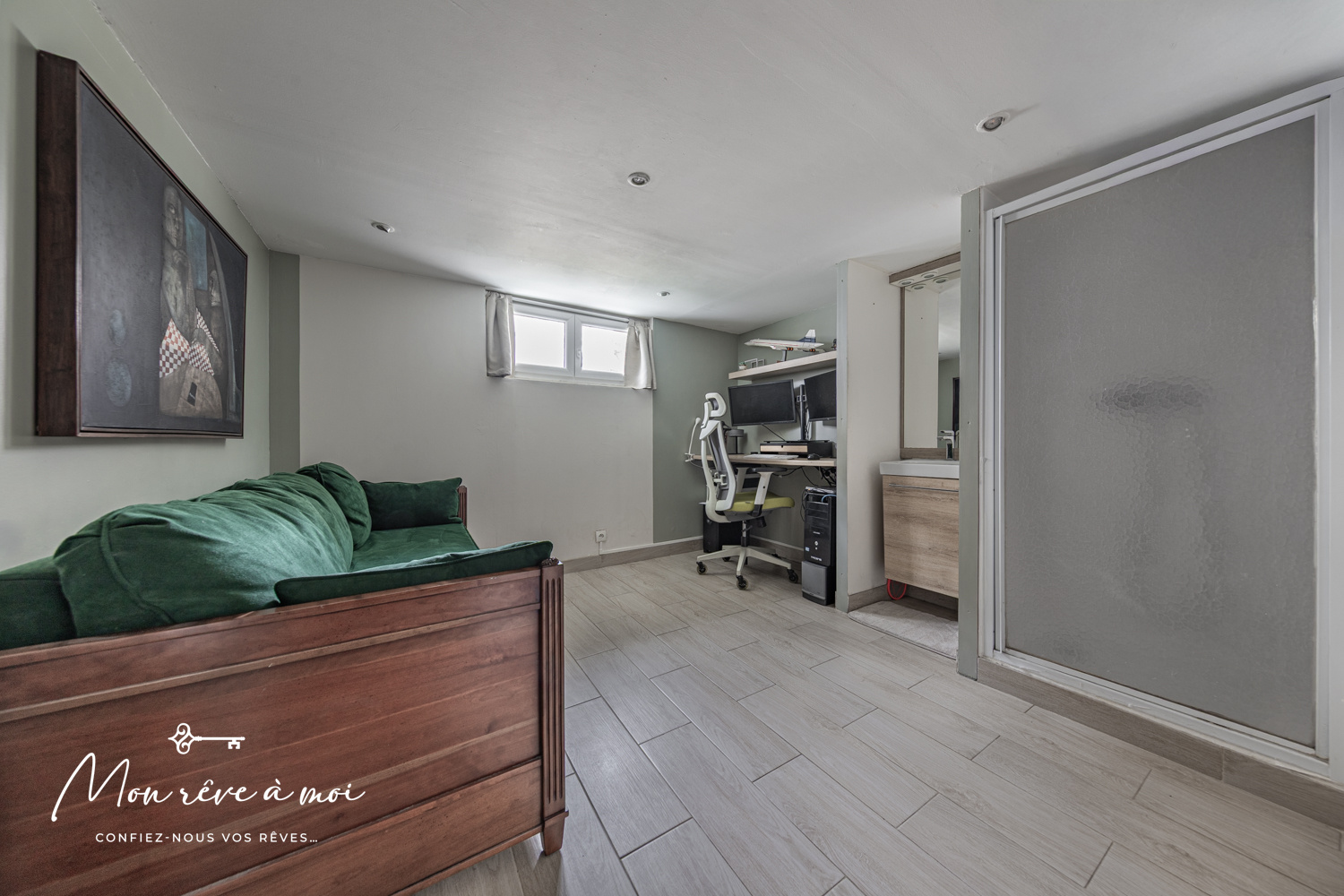 Au niveau inferieur, d’une chambre (ou bureau) de 10m² avec douche et lavabo, d'un coin buanderie ainsi que d'une place de parking.