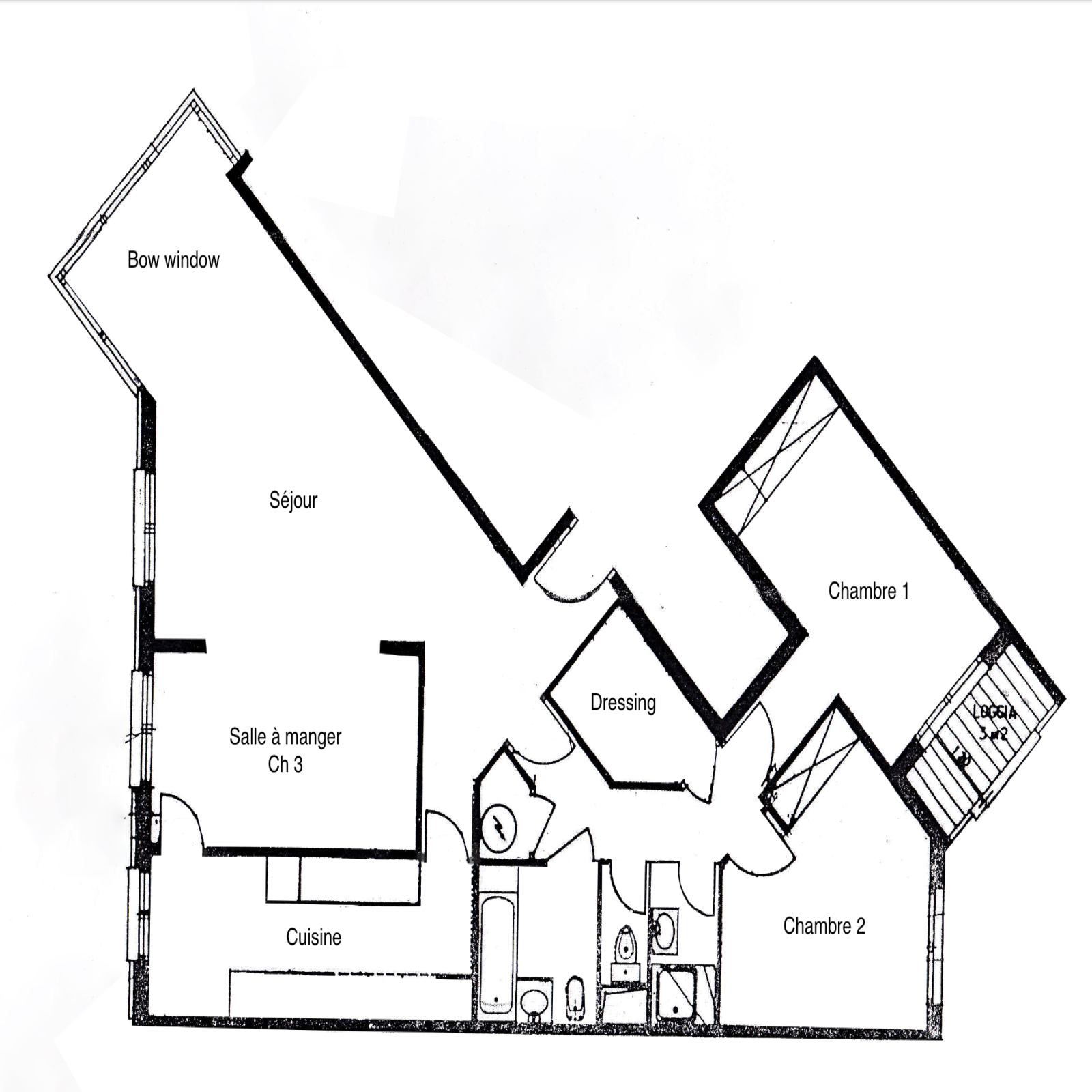 Ce bien de 3/4 pièces à rafraîchir, se compose d’une entrée, d’un double séjour de 39m2, d’une cuisine séparée de 13m2, de deux chambres de 14m2 et 11m2 avec rangements dont une avec balcon (3ème possible, voir plan), d’un dressing de 4m2, d’une salle de bains, d’une salle d’eau ainsi que d’un WC indépendant.