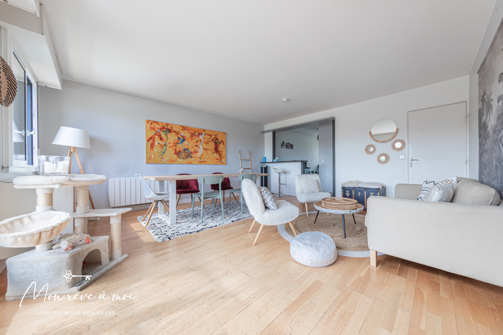 Parc du Château - Mon rêve à moi, 10 ans d'expérience et une commission fixe de 6 900 € vous propose à la vente cet appartement traversant, au calme et sans vis-à-vis de type F4/F5 de 115m² (115,39m² loi Carrez), situé au 4ème et dernier étage avec ascenseur d’un immeuble de 1989, à proximité des transports, des écoles, des commerces ainsi que du parc du Château.