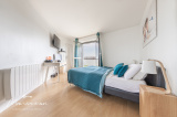 Ce bien lumineux et ensoleillé (orienté sud-ouest), se compose: d’une entrée avec rangements, d’un double séjour-salle à manger de 35m² donnant accès à une terrasse de , d’une cuisine ouverte, aménagée et équipée, de 3 chambres (dont une avec balcon) de 10m², 12m², et 16m² avec rangements (4ème possible de 10m²), d’une buanderie, d’une salle de bains, d’une salle d’eau avec WC ainsi que d’un WC indépendant.