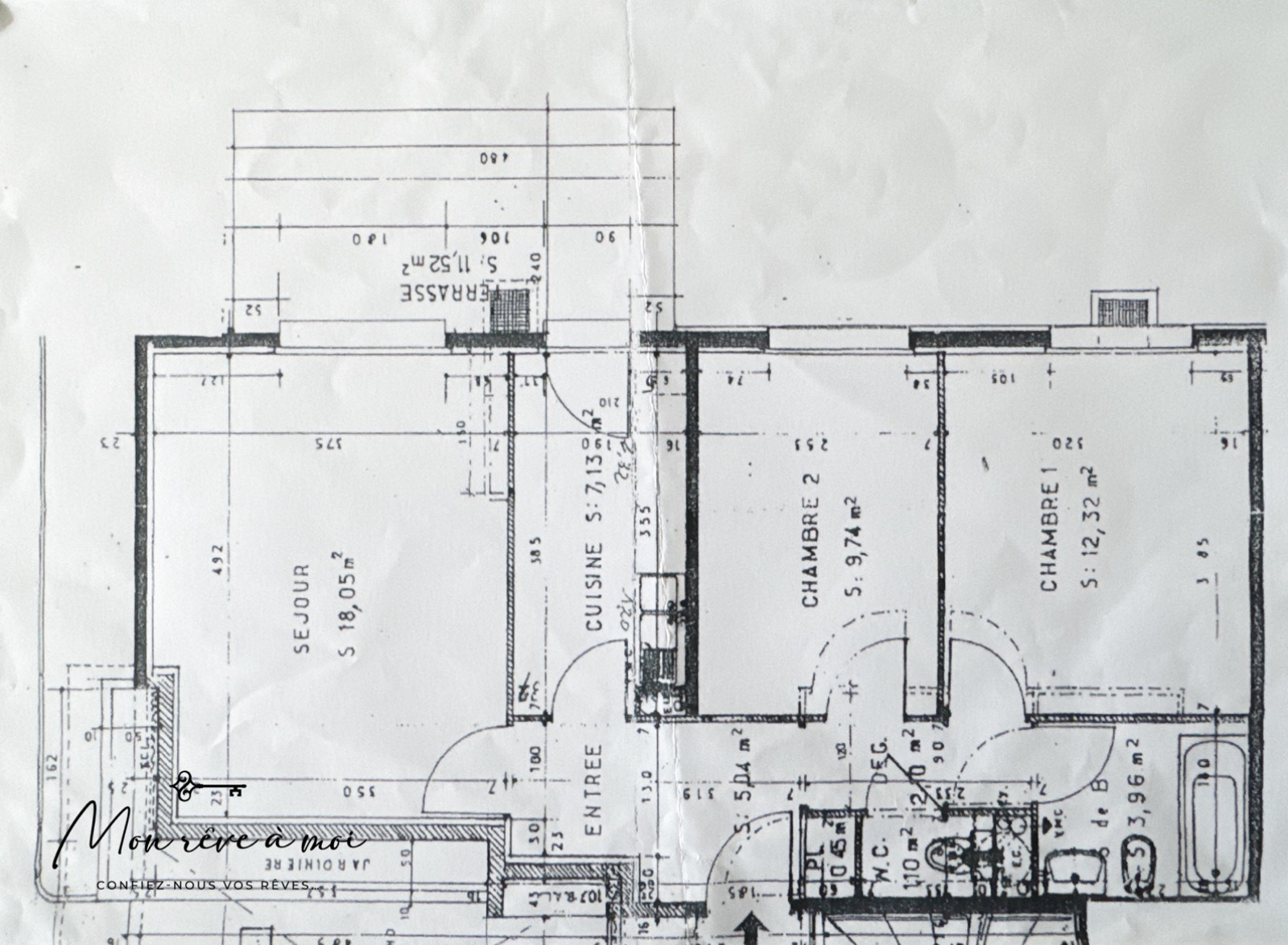 d’une entrée avec rangements, d’un séjour de 18m², d’une cuisine séparée, aménagée et équipée de 7m² (ouvrable sur le séjour), de 2 chambres de 10m² et 12m², d’une salle de bains ainsi que d’un WC indépendant.