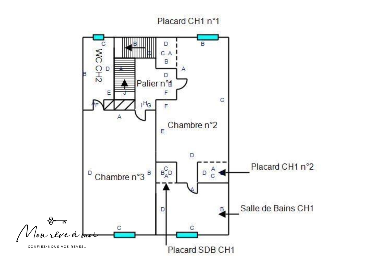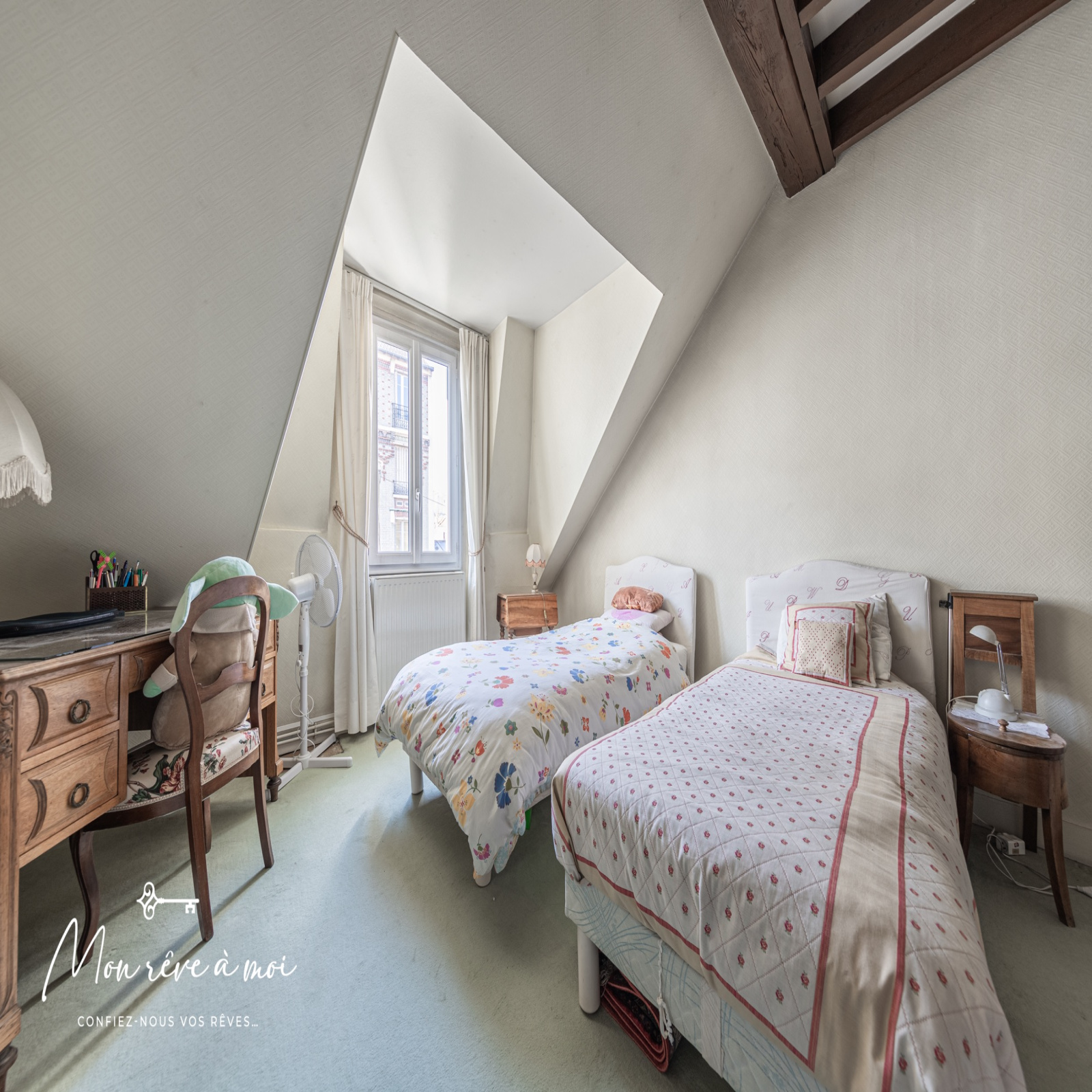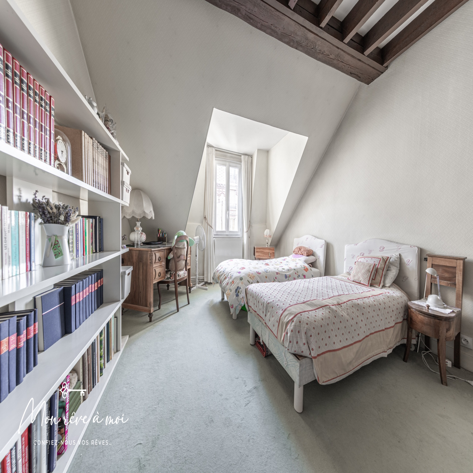 – Au 2ème étage: de 2 chambres de 15m² et 16m², d’une salle de bains ainsi que d’un WC indépendant.