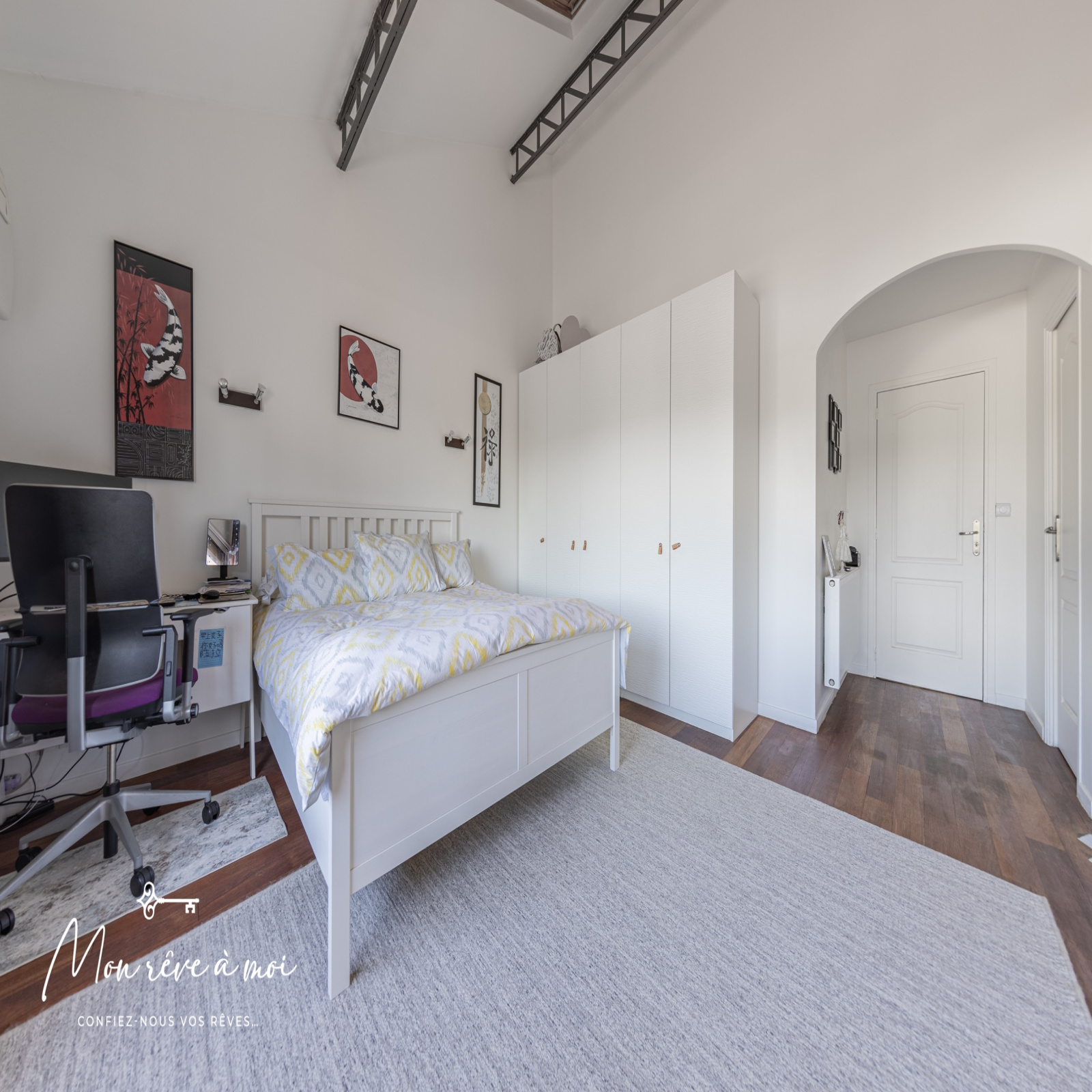 Au 1er étage: d'une suite parentale de 31m² avec salle de bains (douche et baignoire) et dressing, de deux chambres avec rangements de 11m² et 10m², d’une seconde salle de bains avec WC ainsi que d'une mezzanine de 12m².