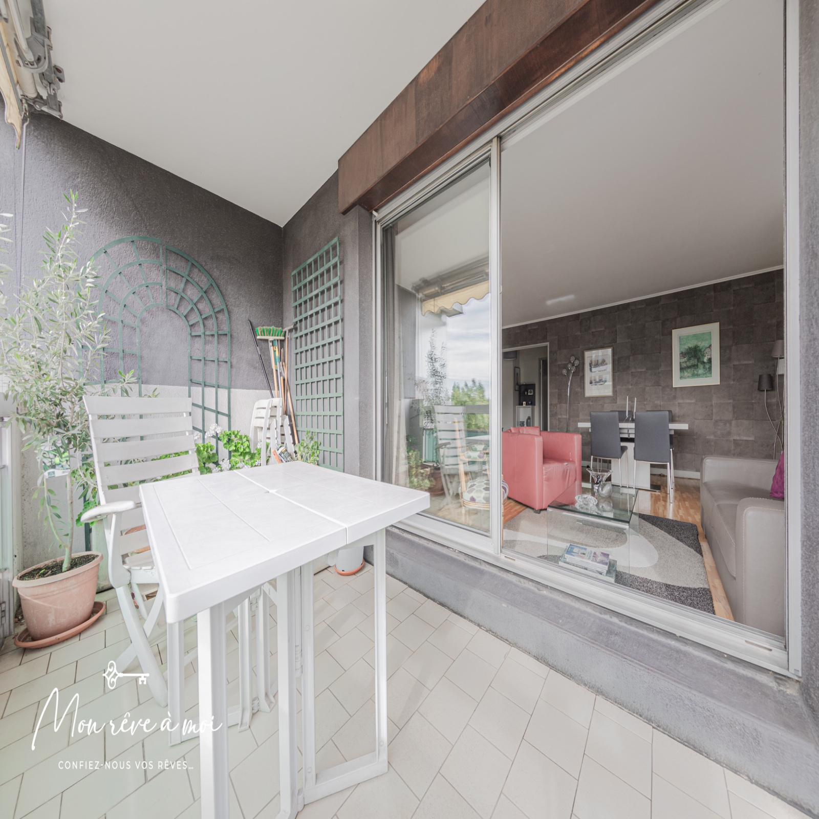 d’une entrée avec rangements, d’un séjour de 30m² donnant accès à une terrasse, d’une cuisine séparée, aménagée et équipée, de 2 chambres de 10m² et 12m² avec rangements, d’une salle d’eau, ainsi que d’un WC indépendant.