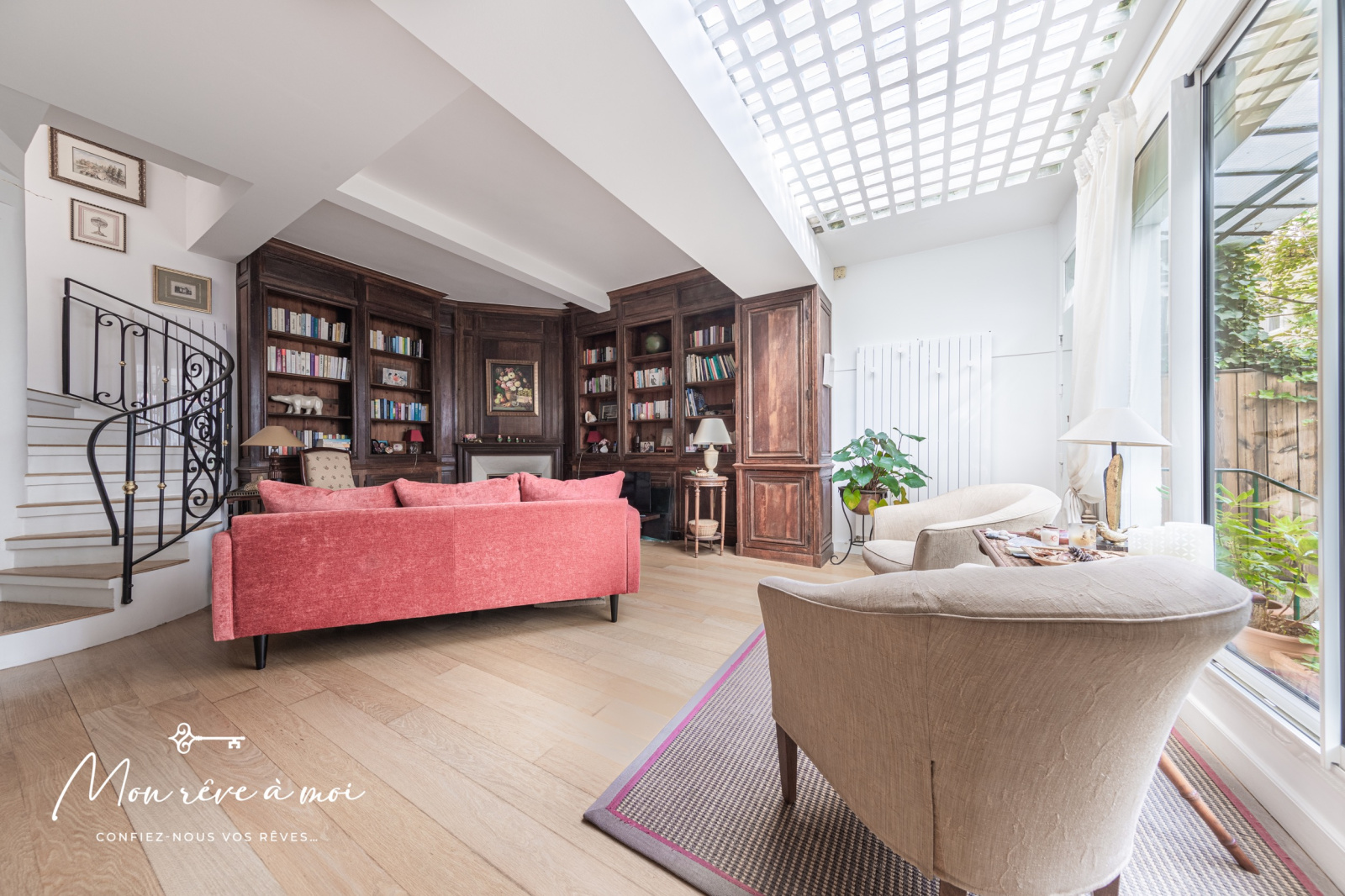Au rez-de-chaussée, d’un séjour de 30m² donnant accès au petit jardin de 15m².