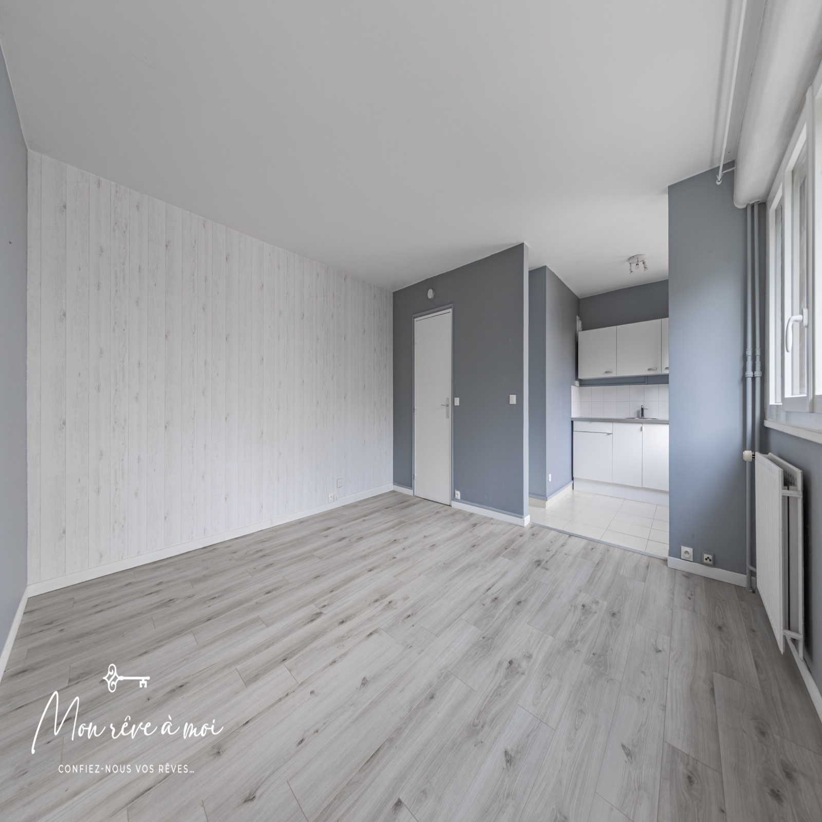 d’une entrée avec rangements, d’un ensemble séjour-cuisine ouverte de 24m², d'une chambre de 11m², d'une salle de bains ainsi que d'un WC indépendant.