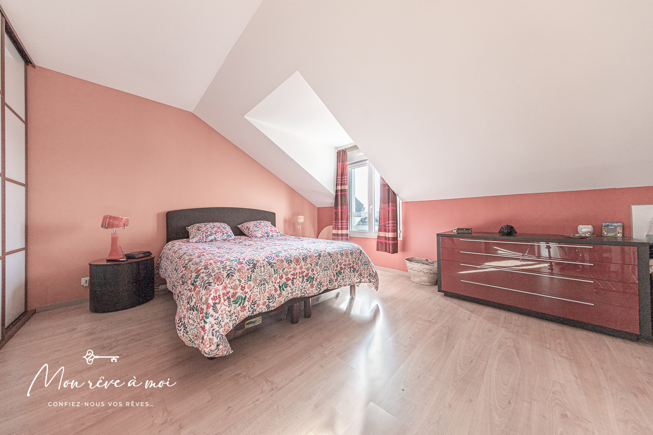 A l’étage: de 3 chambres de 13,50, de 14,50 et de 15m² ainsi que d’une salle de bains avec un WC intégré.