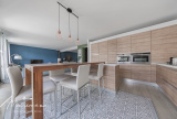Au rez-de-chaussée, d’un double séjour de 57m² donnant accès à un jardin avec terrasse et piscine, d’une cuisine dinatoire ouverte, aménagée et équipée, d’un WC indépendant ainsi que d’un box avec accès direct à la maison (seconde place devant la maison).