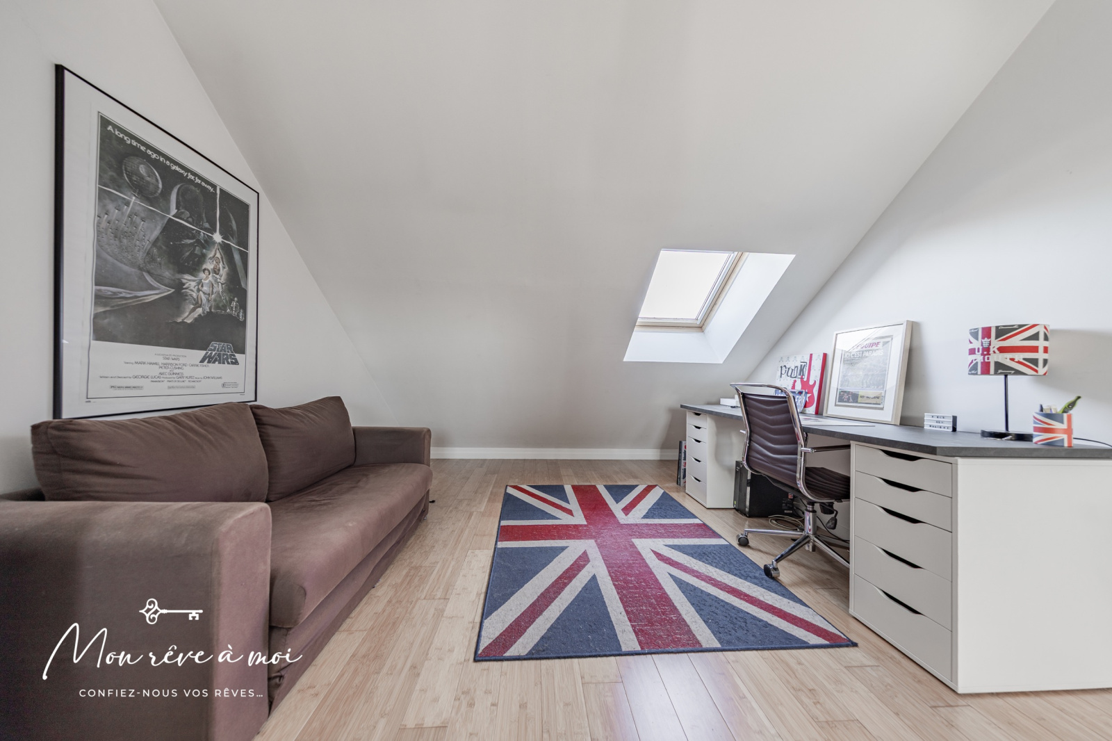 Au 2ème étage (combles aménagés), d’une grande pièce de vie de 30m² (57m2 au sol) avec coin bureau ainsi que d'une chambre de 15m² (30m² au sol)