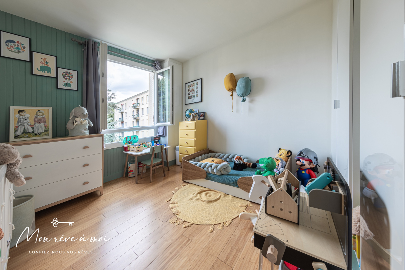 D’une entrée avec rangements, d’un séjour de 27m² donnant accès à un balcon, d’une cuisine séparée, aménagée et équipée, de 2 chambres avec rangements de 10,87m² et 9,47m², d’une salle d’eau ainsi que d'un WC indépendant.